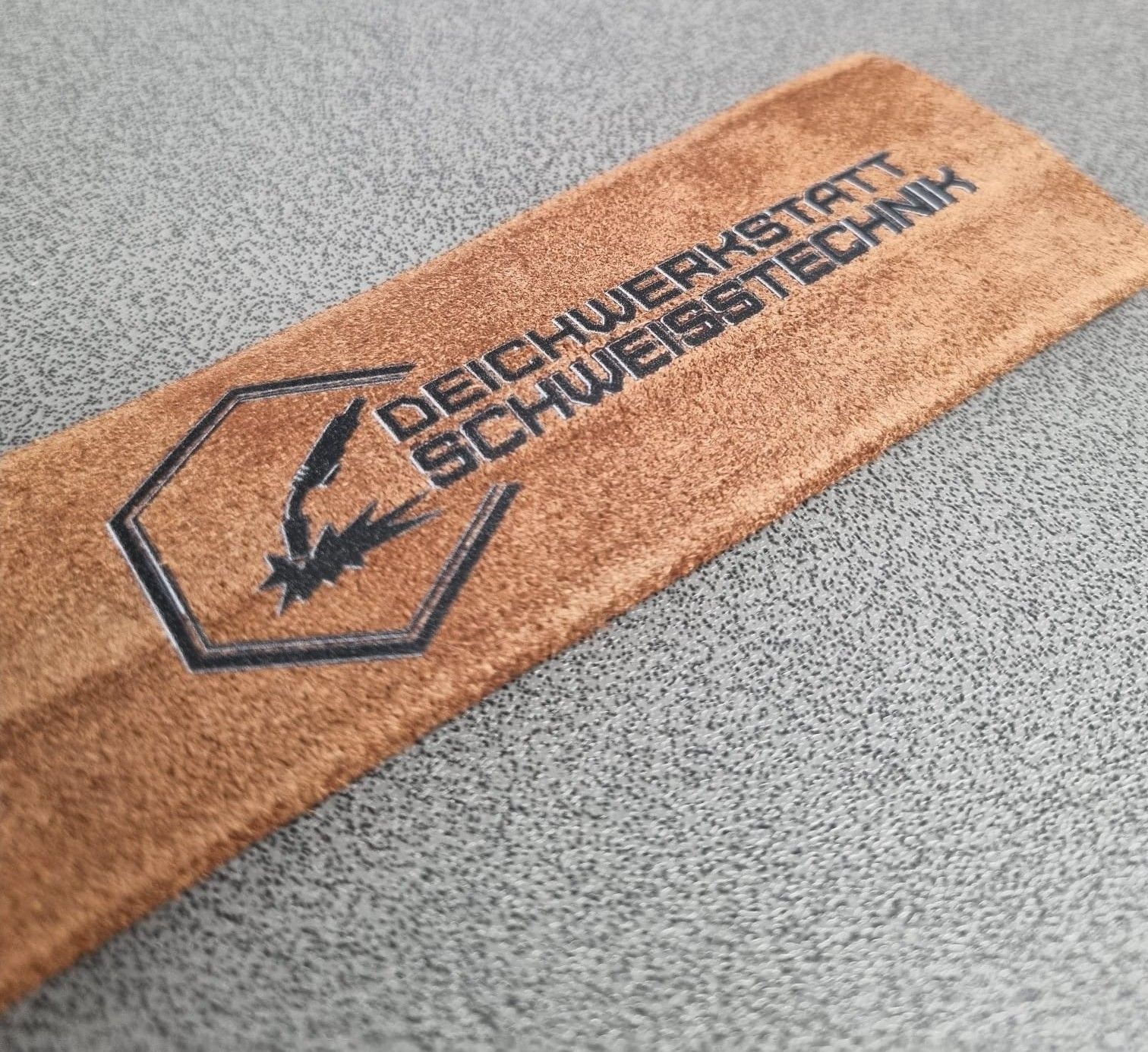 Den Übergang vom Griffstück auf den Schlauch fertigen wir mit Wildleder (circa 0.7m lang) damit in diesem Bereich der größtmögliche Komfort gegeben ist. Das Logo ist dauerhaft und beständig aufgebracht.